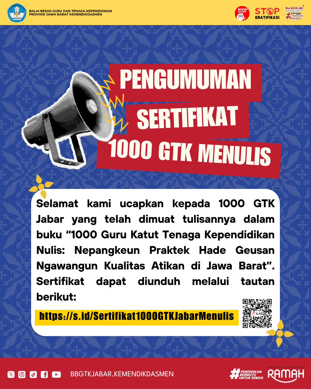 📢 Pengumuman untuk #SahabatBBGTKJabar!
