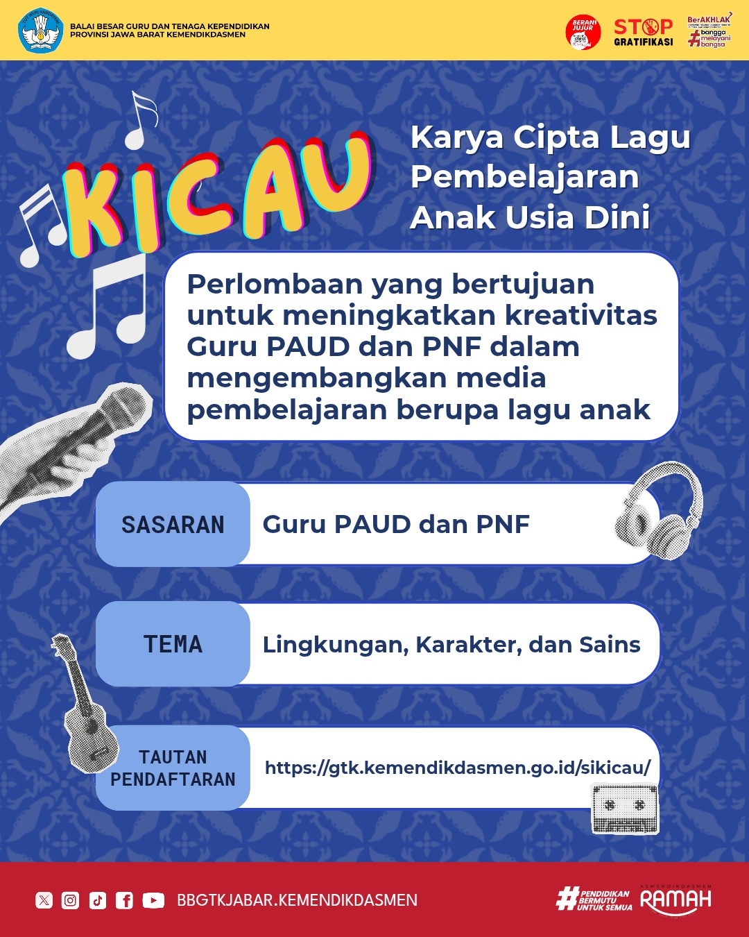KICAU 2025 Karya Cipta Lagu Pembelajaran Anak Usia Dini Halo Guru PAUD dan PNF se-Jawa Barat! Saatnya unjuk kreativitasmu dalam