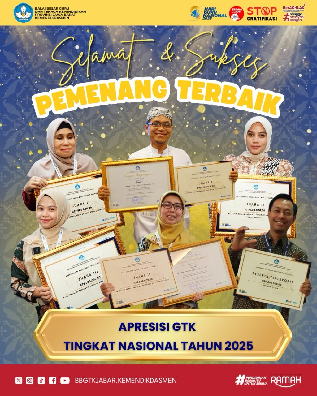 🏆 Pengumuman 3 Terbaik Penghargaan GTK Tahun 2025 Tingkat Provinsi Jawa Barat 🎉