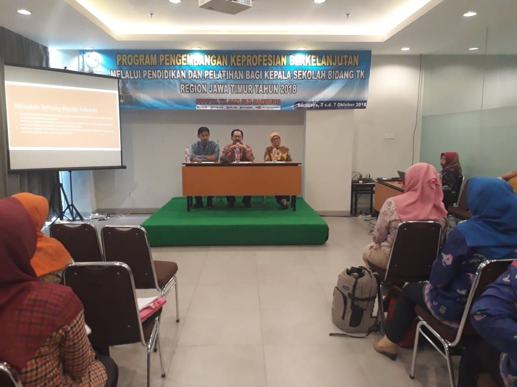 Kegiatan Program Pengembangan Keprofesian Berkelanjutan Melalui Pendidikan dan Pelatihan Bidang Taman Kanak-Kanak Bagi Kepala Sekolah Tahun 2018 Region Jawa Timur