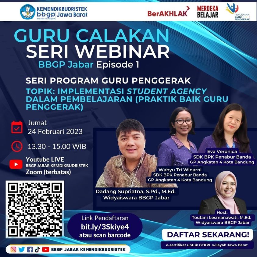 Sampurasun, Sahabat BBGP Jabar! Jangan lewatkan untuk mendaftar Guru Calakan Seri Webinar BBGP Jabar Episode 1 yang mengusung tema Program