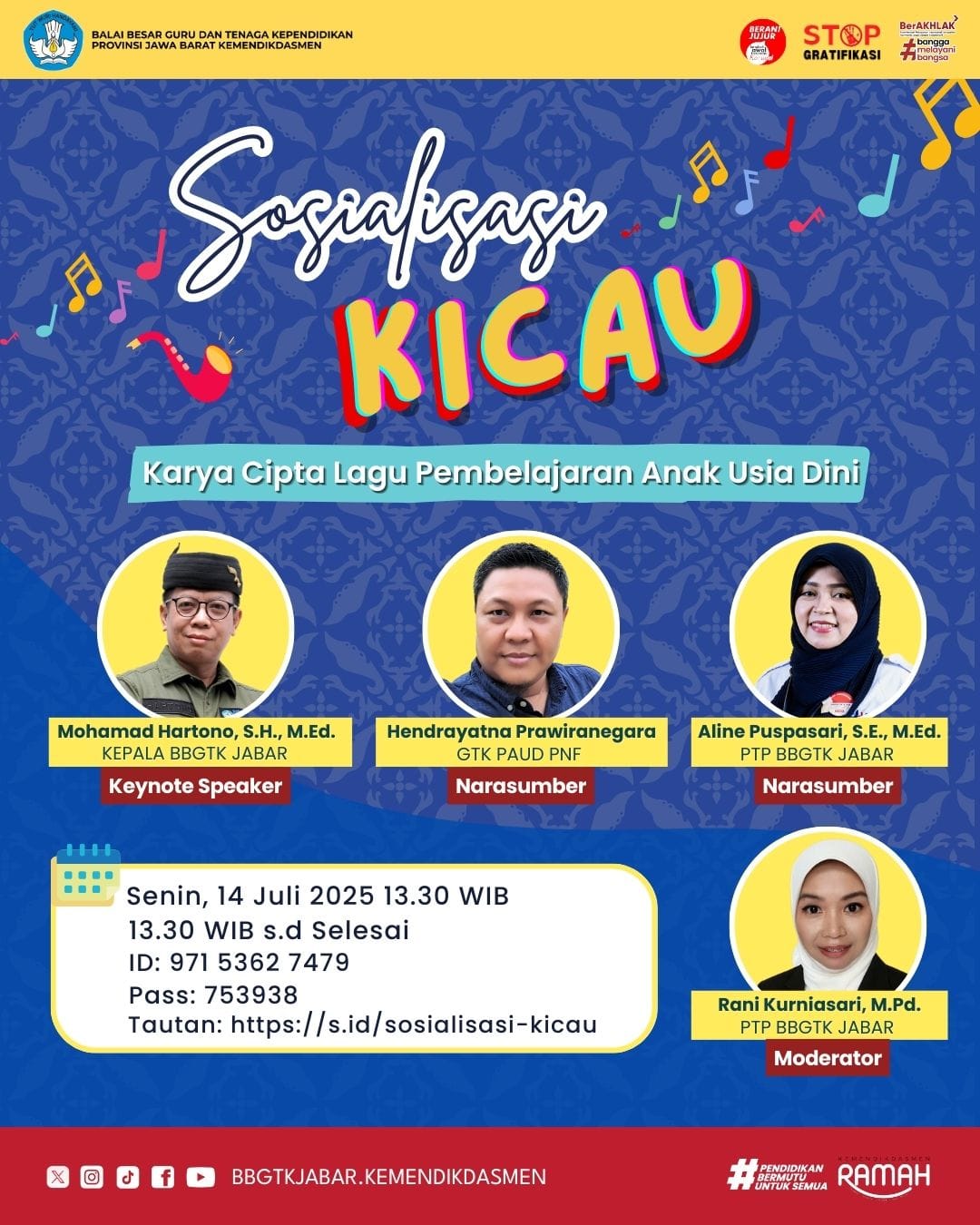 #SahabatBBGTKJabar, yuk ikuti sosialisasi lomba KICAU bagi guru PAUD dan PNF! π€ Bahas lengkap teknis, tema, serta tips menciptakan lagu