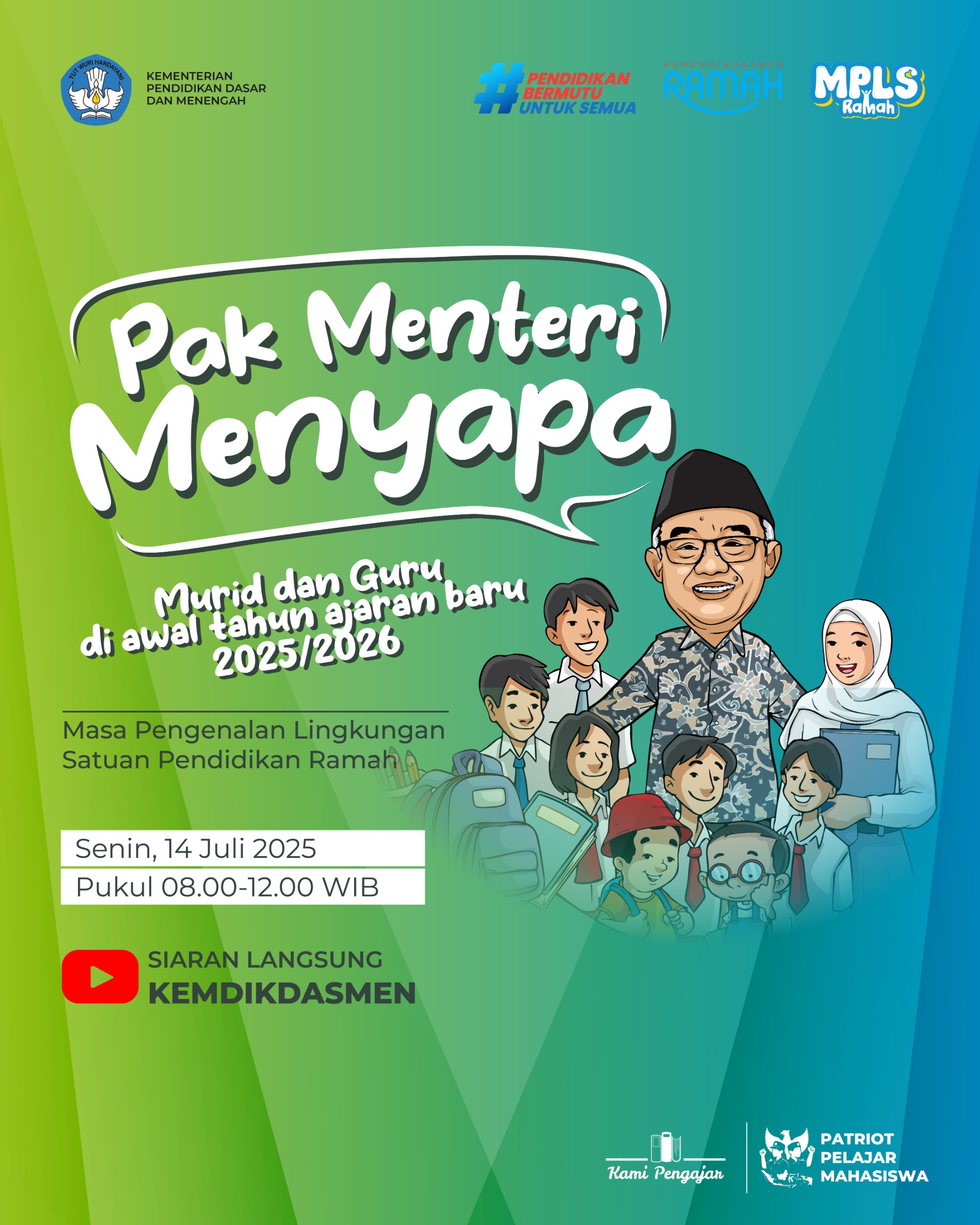 Mari sambut tahun ajaran baru dengan semangat dan inspirasi langsung dari Pak Menteri! Dalam momentum Masa Pengenalan Lingkungan Satuan Pendidikan
