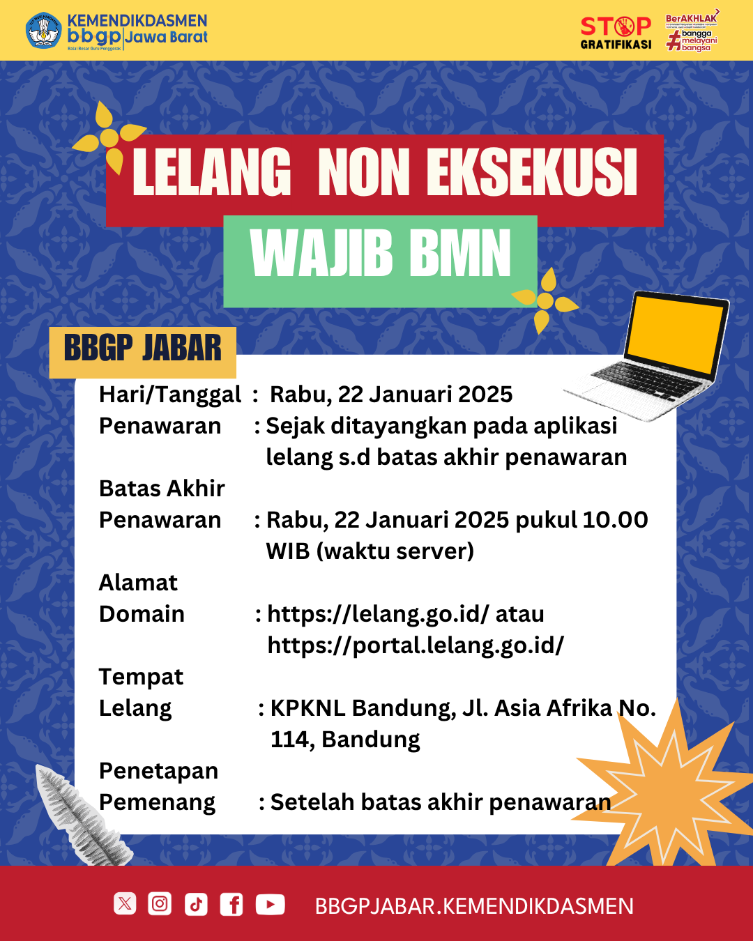 Balai Besar Guru Penggerak Provinsi Jawa Barat (BBGP Jabar) berdasarkan Surat Nomor: S-378/KNL.0801/2025 tanggal 13 Januari 2025 tentang Penetapan Jadwal