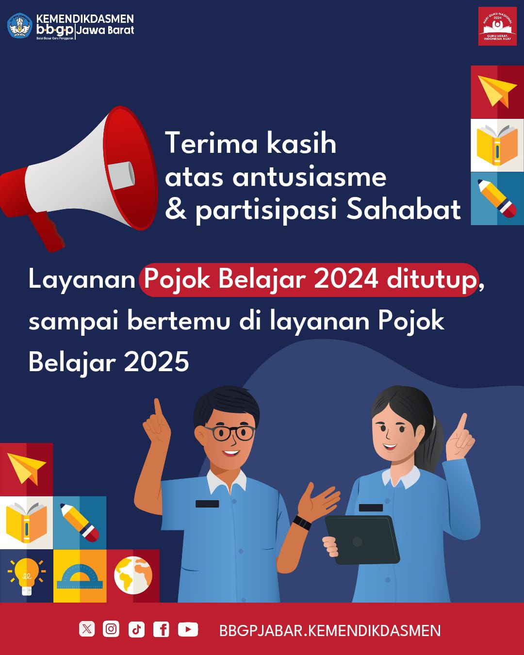 Terima kasih atas antusiasme & partisipasi Sahabat. Layanan Pojok Belajar 2024 ditutup, sampai bertemu di layanan Pojok Belajar 2025 👋