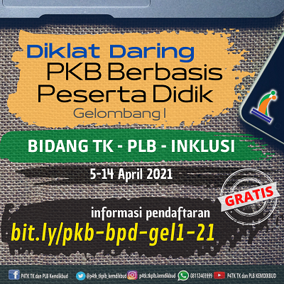 Diklat Daring Pengembangan Keprofesian Berkelanjutan Berbasis Peserta Didik (PKB-BPD) Bidang TK dan PLB Gelombang 1 Tahun 2021