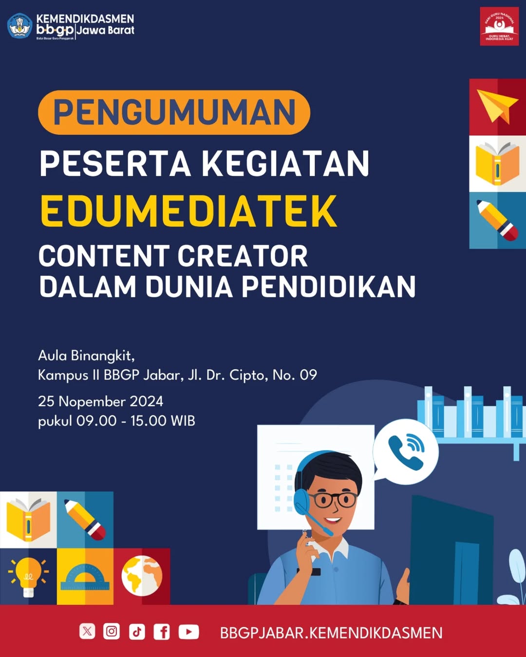 Pengumuman Peserta Kegiatan Edumediatek Content Creator Dalam Dunia Pendidikan