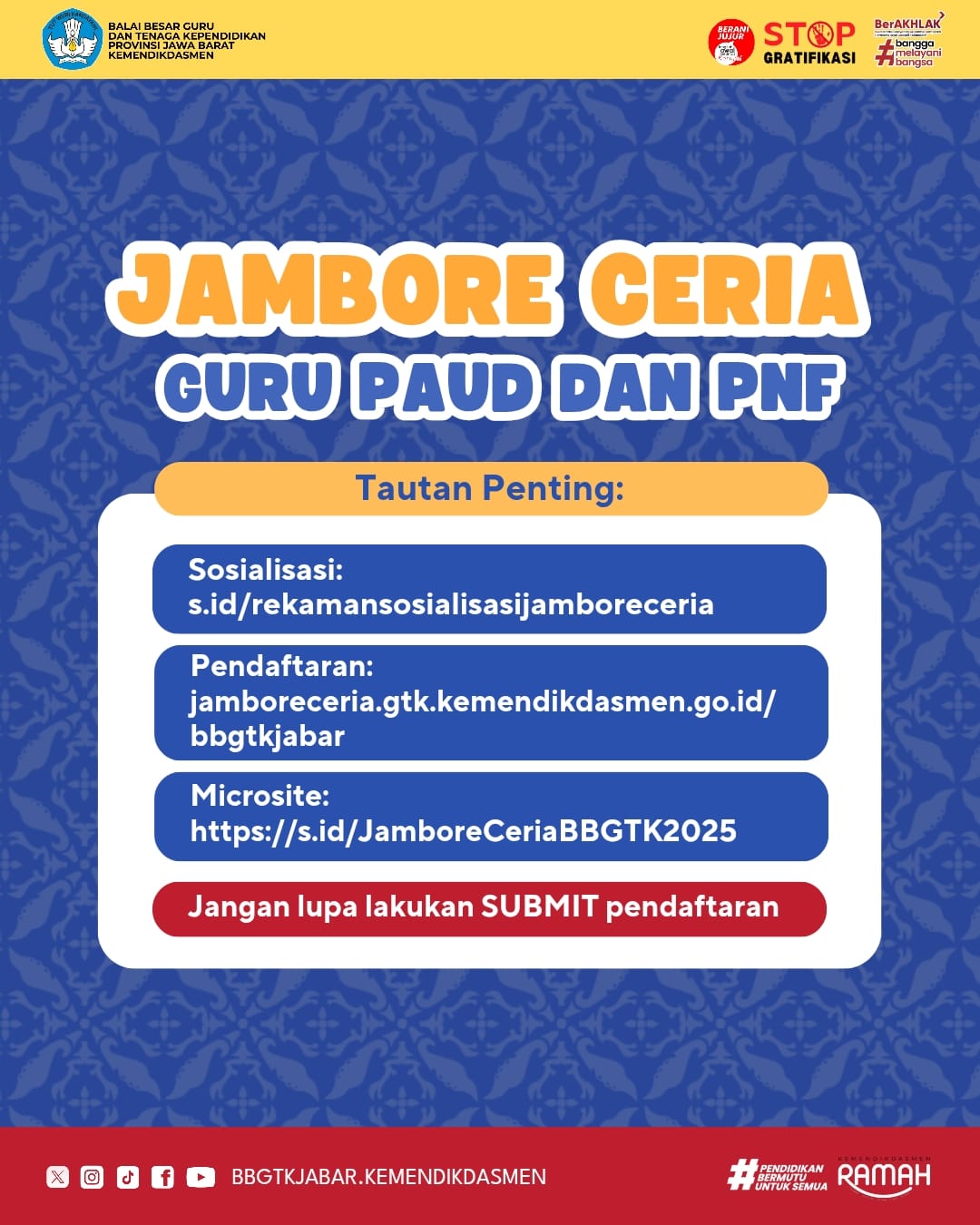 🎉 Jambore Ceria Guru PAUD dan PNF 2025! 🎶📚 Yuk, Bapak Ibu Guru PAUD dan PNF, simak informasi lengkap tentang