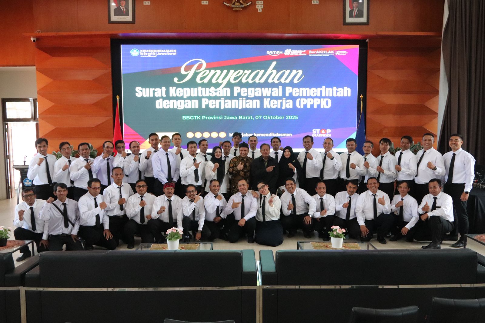 BBGTK Jawa Barat melaksanakan kegiatan Penyerahan Surat Keputusan Pegawai Pemerintah dengan Perjanjian Kerja (PPPK) pada Selasa (07/10) di Auditorium Rempug Jukung, Bandung.