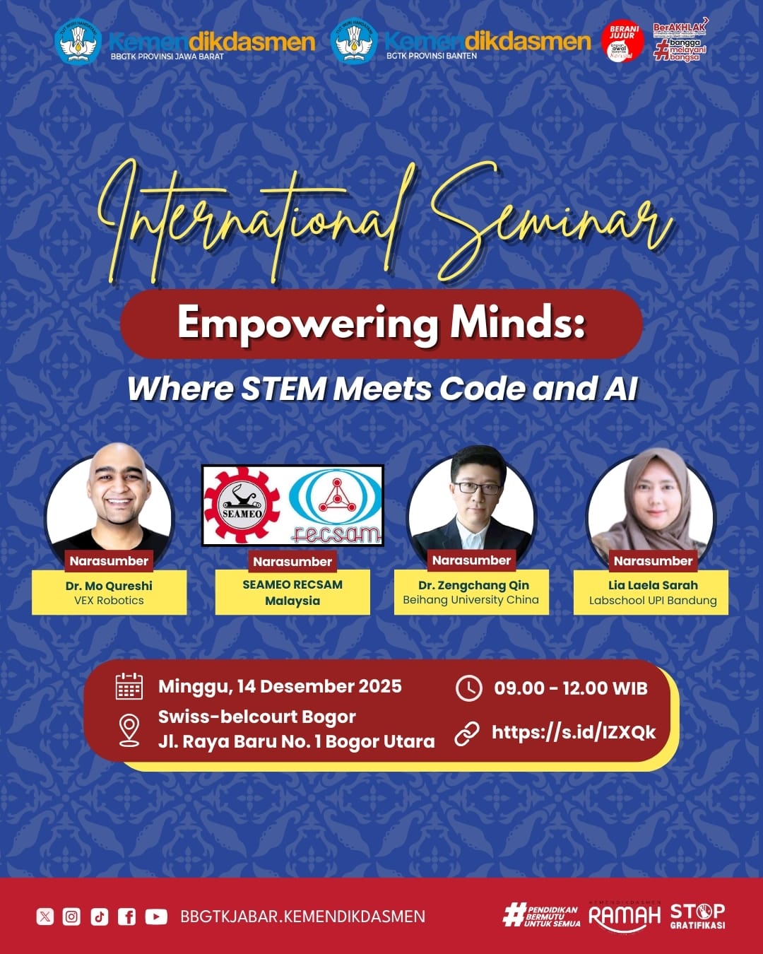 BBGTK Jawa Barat bersama BGTK Banten menghadirkan rangkaian Talk Show Pendidikan Nasional dan International Seminar sebagai ruang berbagi praktik baik, memperluas wawasan, serta memperkuat kompetensi pendidik di Indonesia. πβ¨
