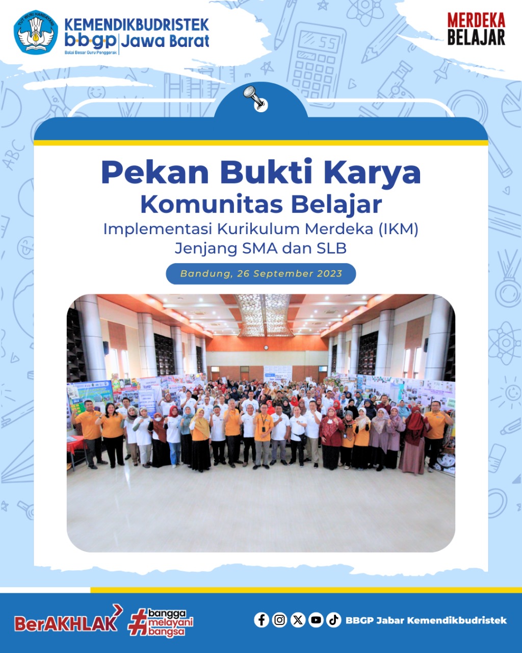 Bandung (26/9), Pekan Bukti Karya Komunitas Belajar Implementasi Kurikulum Merdeka Jenjang SMA dan SLB yang dilaksanakan tanggal 26 September 2023,